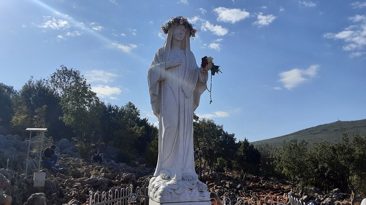Le lendemain départ pour Médjugorge, nous voici à la douane, papiers, hélas, un pèlerin par une erreur de l’administration ne possédait pas le bon document. Il a dû, à notre désappointement, rester en Croatie accompagné d’un ami, pèlerin lui aussi. Nous continuons notre chemin, arrivée à l’hôtel « Jana », après une bonne nuit, nous étions attendus pour une messe en français, pris connaissance des lieux.