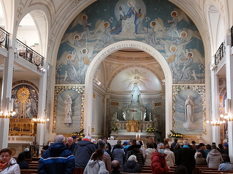 Arrivée à Paris vers 10h15 sous un soleil merveilleux, nous allons donc nous diriger vers la Rue du Bac pour une très belle messe à 10h30. Nous avons aussi le temps de nous recueillir au pied de l’autel où Catherine a reçu les manifestations et enseignements de la Vierge.