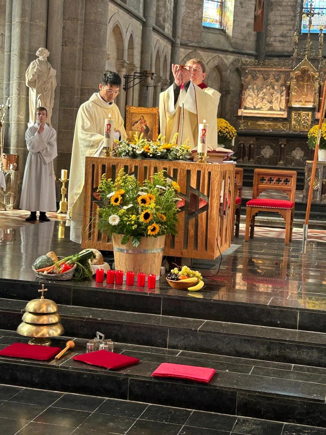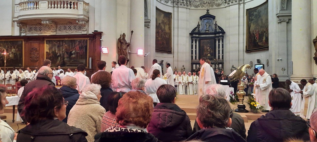 Plus de 800 personnes avaient pris place dans la cathédrale Saint-Aubain pour y vivre la messe chrismale. Près de 200 prêtres sans oublier les diacres étaient également présents pour assister à cette messe de la semaine sainte considérée comme l’une des principales manifestations de la plénitude du sacerdoce de l’évêque. Célébration qui marque encore l’union profonde des prêtres avec l’évêque.