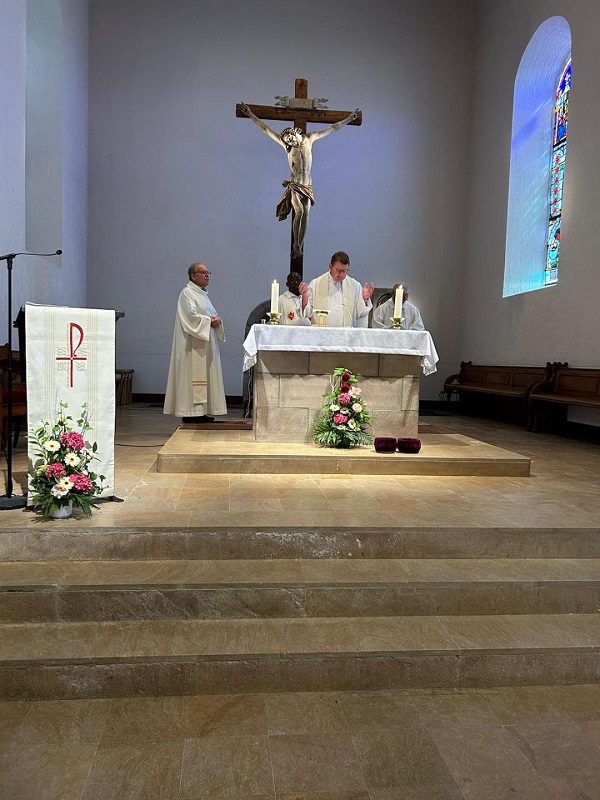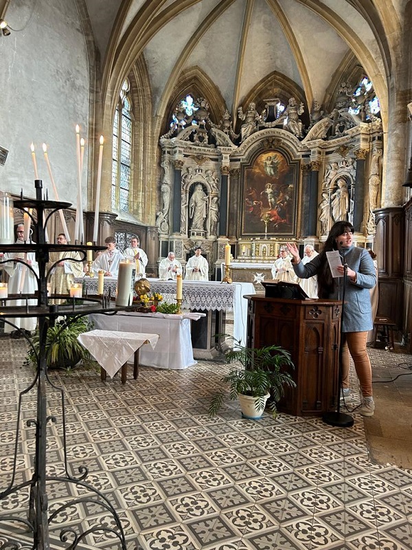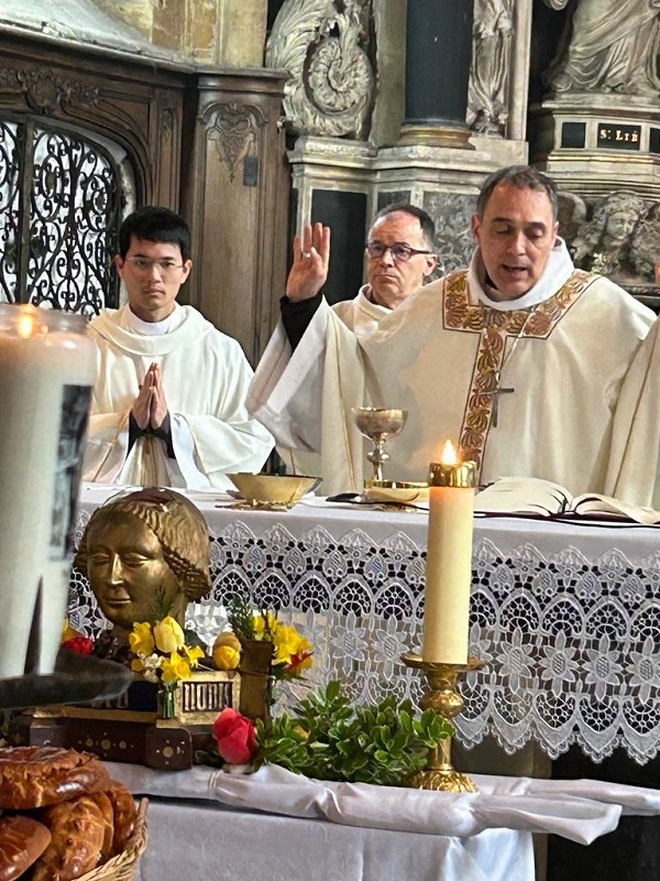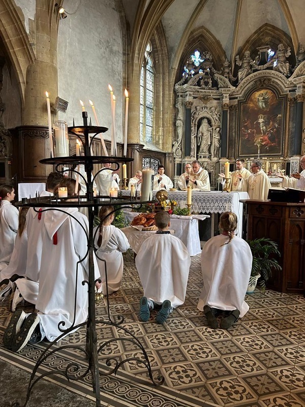Après un chaleureux accueil autour d’une tasse de café et de biscuits, nous sommes allés à la messe présidée par Monseigneur Etienne VETÖ, évêque auxiliaire de Reims. A la fin de la messe, nous avons formé une procession pour vénérer les reliques de St Lié. Le temps de prière s’est clôturé par une chasse aux œufs, un verre de l’amitié et un excellent barbecue.