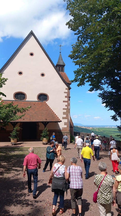 Lundi : Visite de guidée de la chapelle à Schaunberg, construite suite à la guérison miraculeuse d’une princesse, cette chapelle recèle bien des secrets ! Un panorama exceptionnel sur toute la plaine d’Alsace a émerveillé tous les pèlerins. Ensuite nous assistions à la messe du pèlerinage.