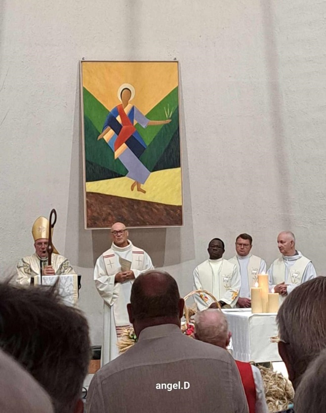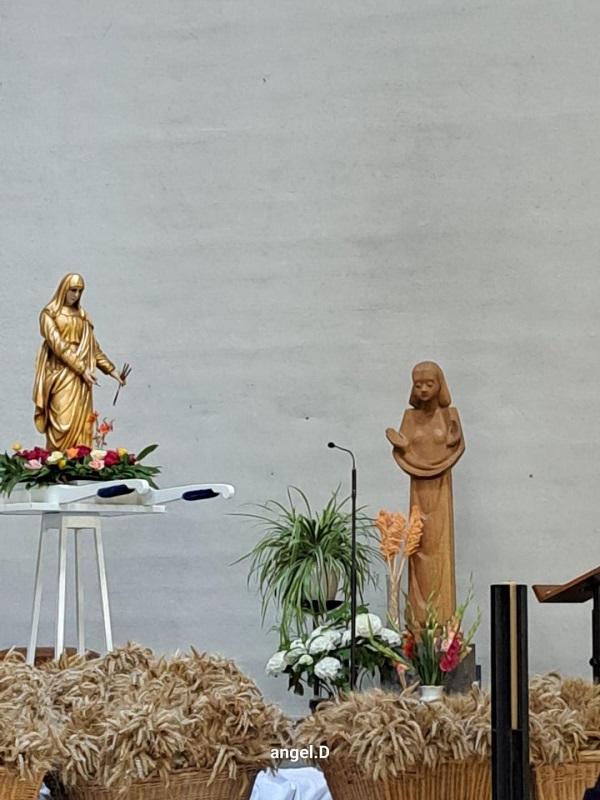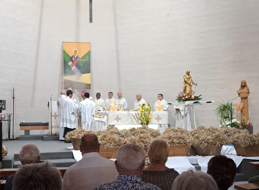 Dimanche, grand jour de fête qui débute par la messe présidée par Mgr Philippe BALLOT évêque de Metz, concélébrée par plusieurs prêtres au cours de laquelle il y avait la bénédiction des épis et distribution après la cérémonie.