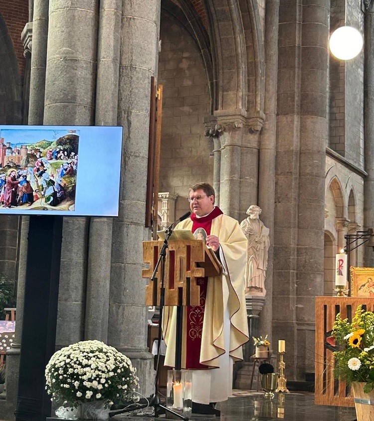 Philippe GOFFINET : Mais l’important, c’est l’évangélisation. C’est ce que je vais continuer avec les Pèlerinages namurois. Car la dévotion populaire fait partie de l’évangélisation. En entrant au séminaire, nous avons découvert les textes de Vatican II avec une manière de faire Église, et c’est pourquoi je suis attentif à tous les cléricalismes qui essaient de reprendre le dessus. A une époque, les pèlerinages étaient regardés de haut. C’était de la bondieuserie. J’ai toujours tenu bon. Maxi Tasiaux m’avait dit que ce serait un beau ministère. Le pèlerinage peut être une école de vie et de vie chrétienne. Je suis devenu directeur des pèlerinages il y a 26 ans. Il est important que dans vos doyennés vous soyez attentifs à l’émergence de la piété populaire que vous devez évangéliser et qui nous évangélise.