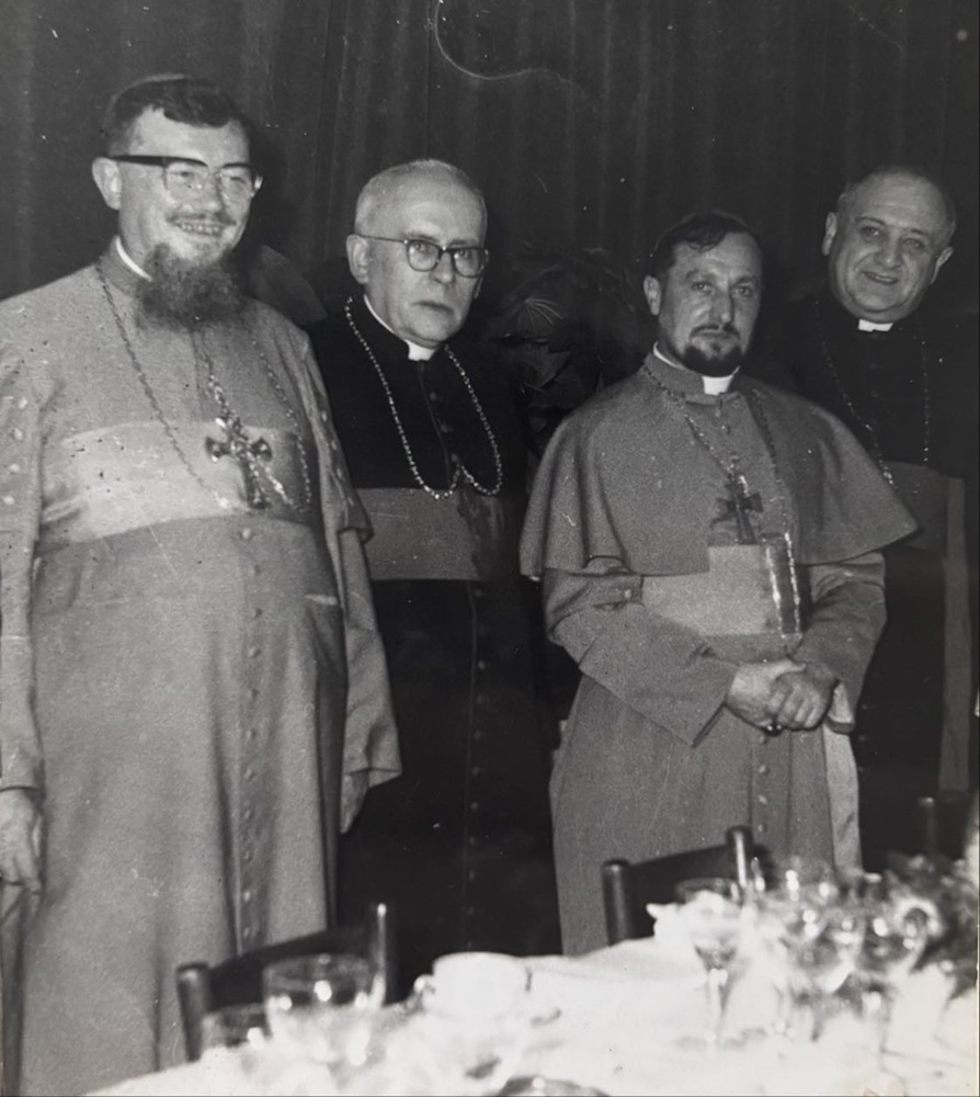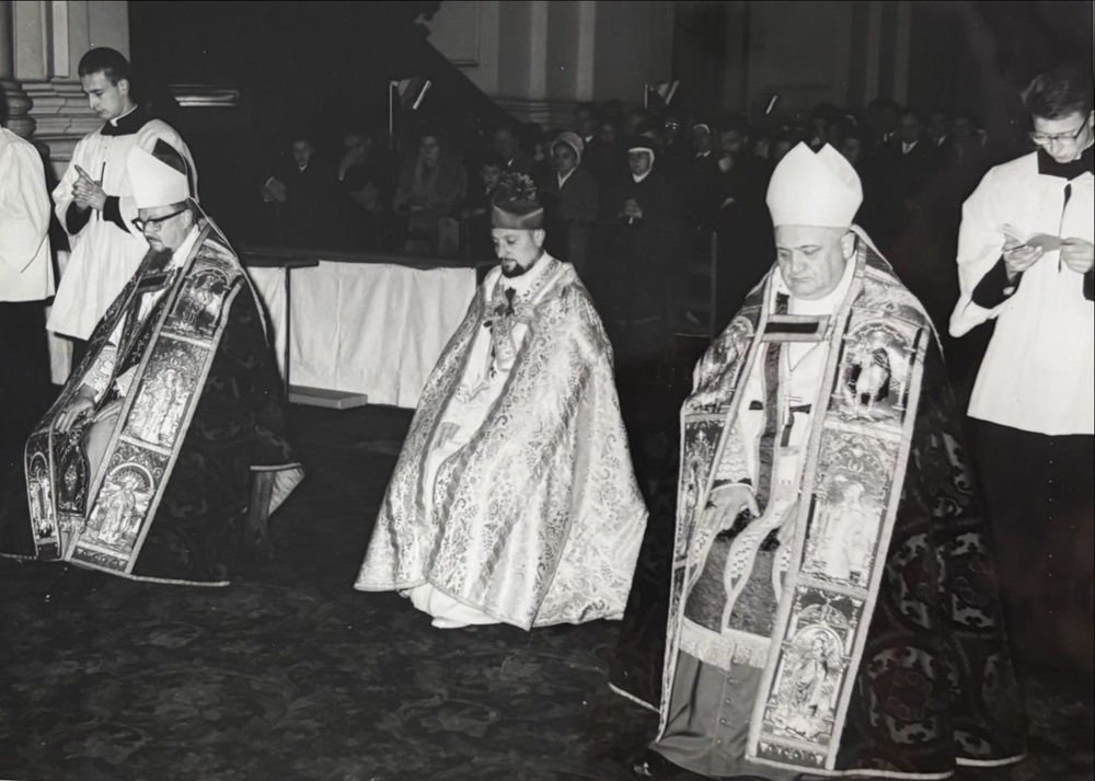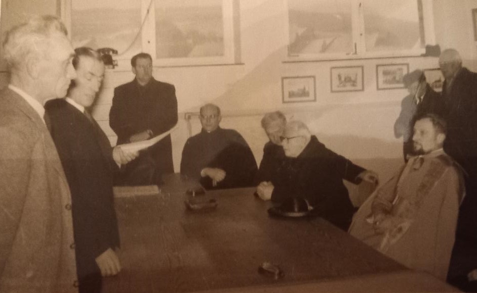 M. J.M. ROZET, séminariste, prend la parole au nom de la paroisse. De ce magnifique discours, nous avons retenus les passages suivants : « Que peut-il y avoir de plus beau, de plus grand et de plus inoubliable pour une paroisse que de compter, parmi ses enfants, un Evêque, c’est-à-dire un successeur direct des apôtres. (…) Vous voilà donc évêque, c’est-à-dire conducteur d’âmes, père d’un grand diocèse. Personne n’ignore la lourde tâche qui vous attend et les nombreuses difficultés que vous allez devoir affronter pour diriger, pour éclairer, pur montrer à vos ouailles les chemins de la Vérité.