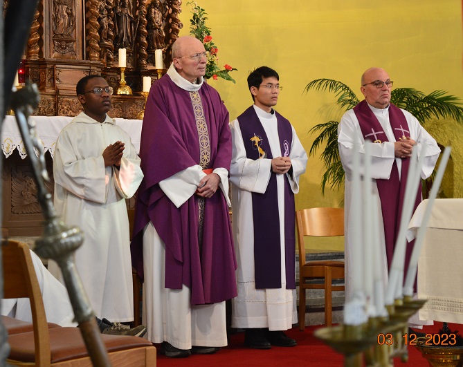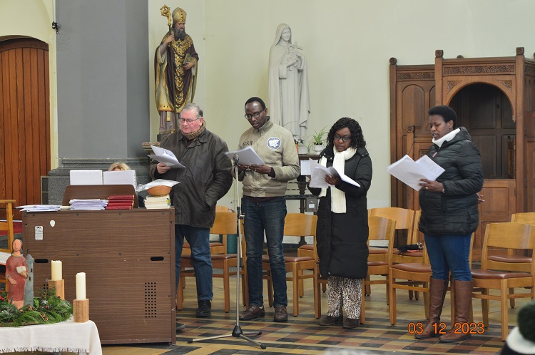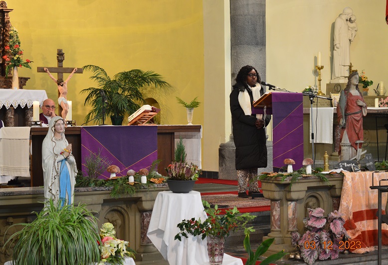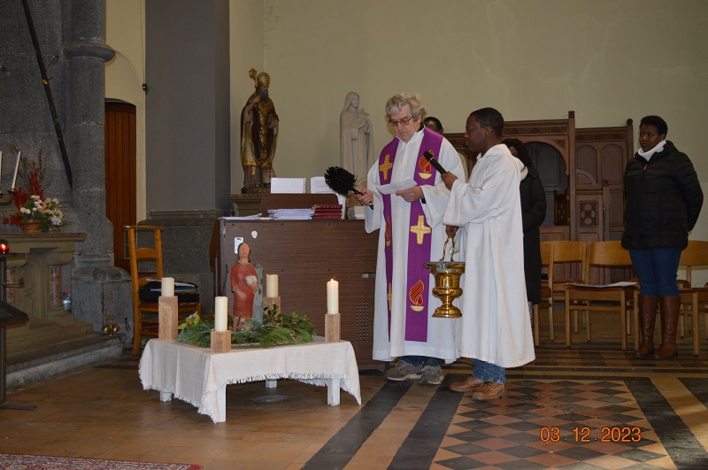 Plusieurs « surprises » au cours de cette belle célébration (assez froide en raison d’un problème de chauffage, mais avec des cœurs vibrants). Nouvel acolyte, nouveau gong pour les célébrations. La chorale africaine. Les enfants de la catéchèse ont présenté leur tableau de l’Avent : brebis du Seigneur marchons vers celui qui vient.